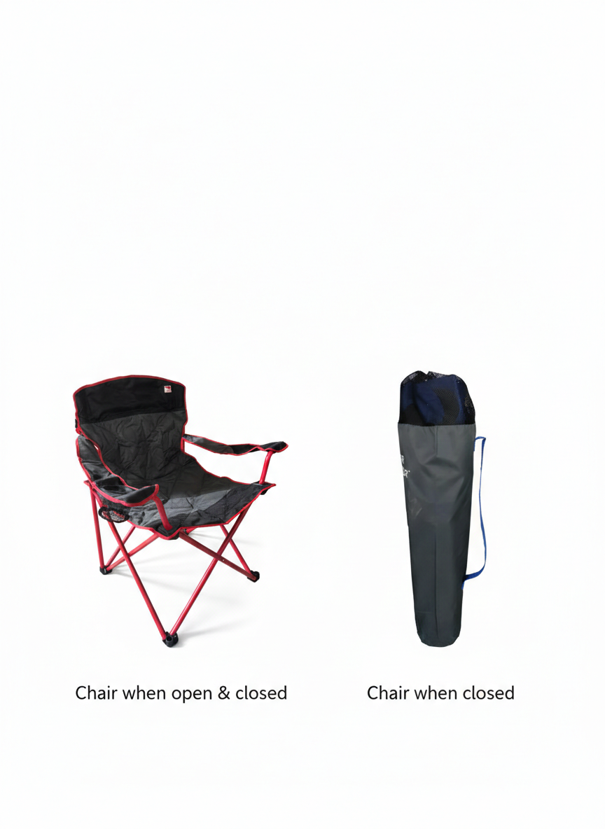 Ατσάλινη πολυθρόνα εκστρατείας ΥΠΕΡ βαρέως τύπου με 2 ποτηροθήκες και θήκη μεταφοράς για θάλασσα & camping σε κόκκινο /γκρι χρώμα.