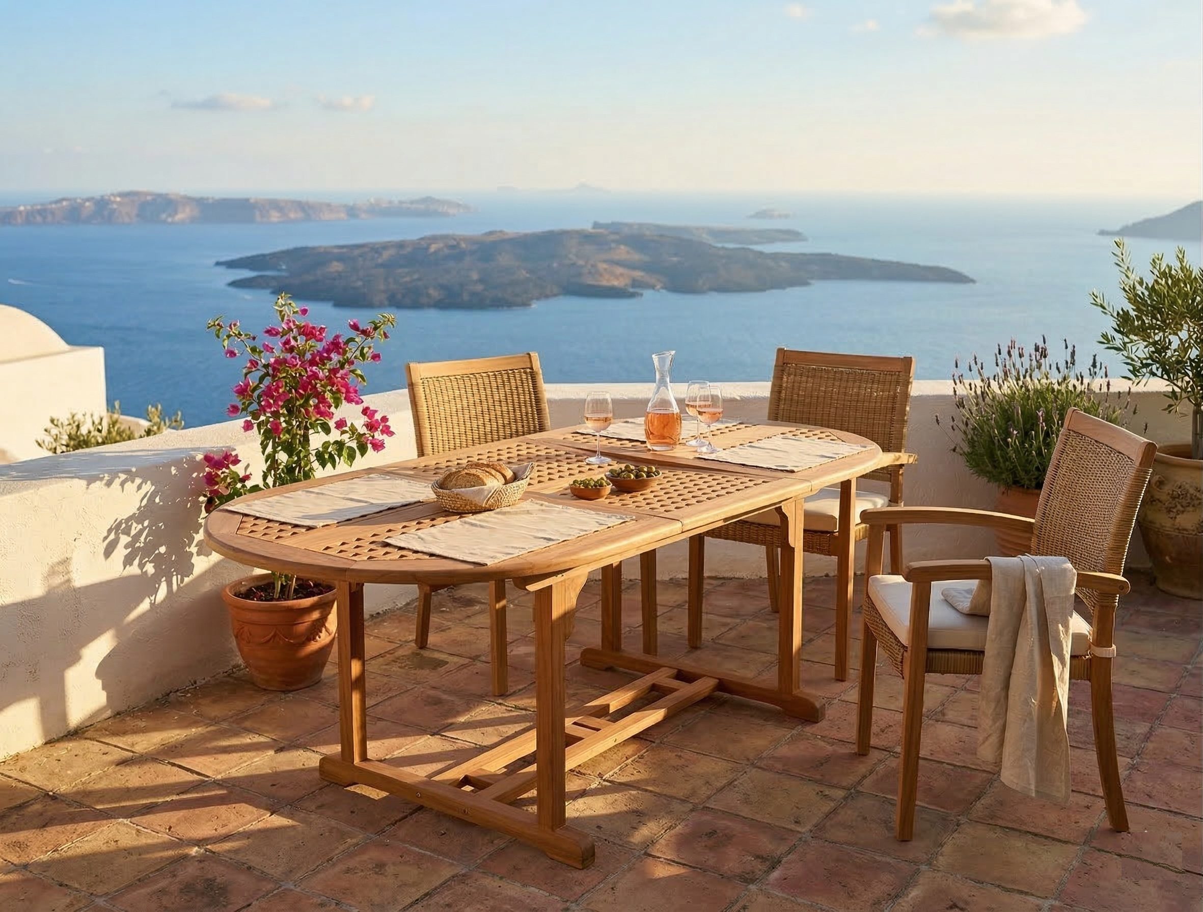 Αναβαθμίστε τον εξωτερικό σας χώρο με την κλασική αισθητική και την απαράμιλλη αντοχή του οβάλ επεκτεινόμενου τραπεζιού της Thirea. Κατασκευασμένο από ξύλο Yellow Balau, ένα κορυφαίας ποιότητας σκληρό ξύλο (hardwood) γνωστό για τη φυσική του ανθεκτικότητα σε εξωτερικές συνθήκες, το τραπέζι αυτό συνδυάζει τη λειτουργικότητα με την κομψότητα.
