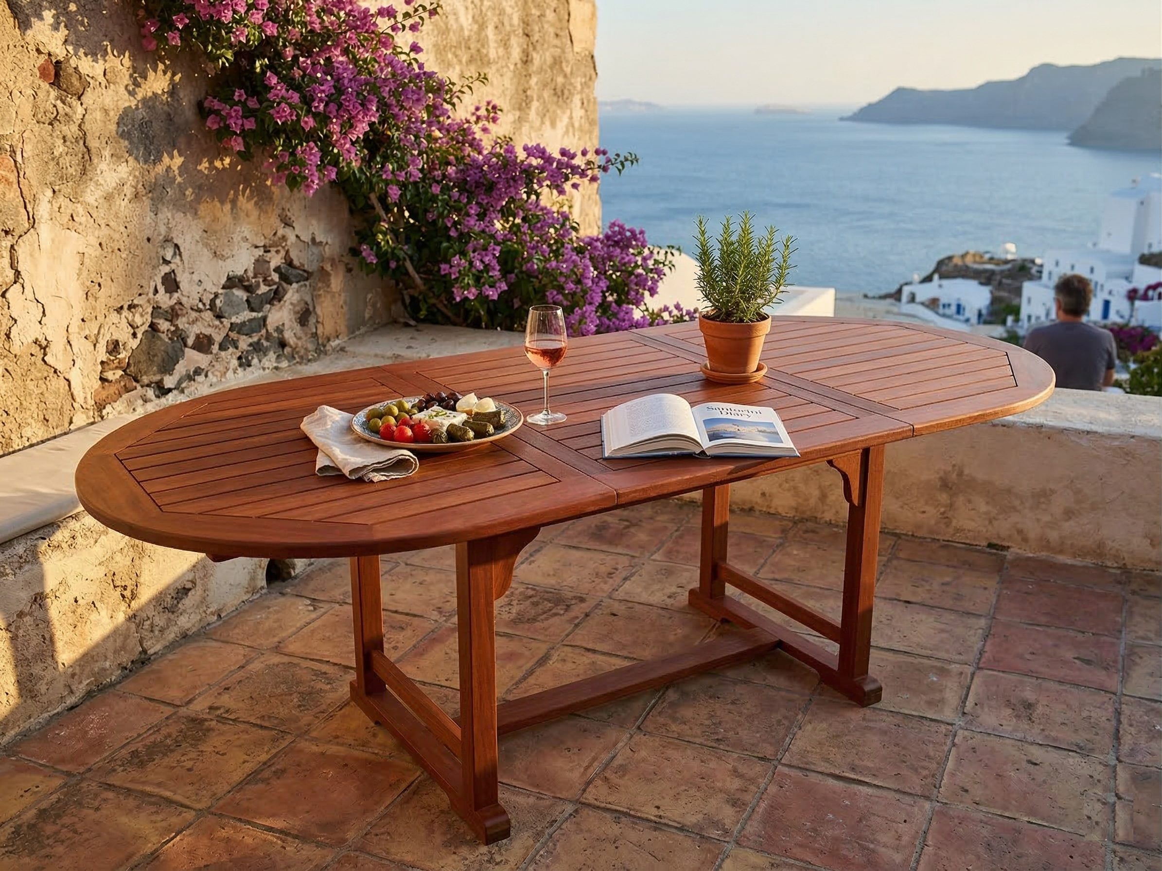 Αναδείξτε τον εξωτερικό σας χώρο με την επιβλητική παρουσία αυτού του μεγάλου, οβάλ τραπεζιού από μασίφ ξύλο Yellow Balau. Σχεδιασμένο για να αποτελεί το επίκεντρο των οικογενειακών συγκεντρώσεων και των επαγγελματικών events, το συγκεκριμένο τραπέζι συνδυάζει την υψηλή αισθητική με τη μέγιστη λειτουργικότητα.